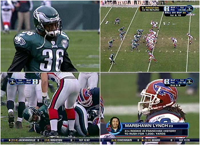 Beide Teams kämpften darum eine ausgeglichene Bilanz zu schaffen. Die Eagles waren an diesem Tag durch die Luft nicht zu stoppen. Bei den Bills schaffte Rookie M.Lynch sein 3. 100 Yard rushing Game und kam damit auf über 1100 Yards in der Saison.